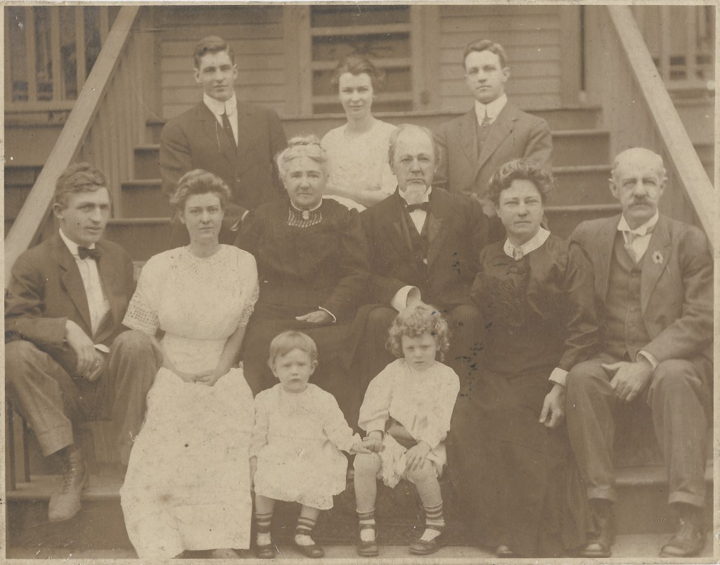 Front Row: Children – Emal?(2), Clarence Jr. (4) Middle Row: Clarence Pemberton, Mary Norcott Pemberton, Judge and Mrs. Henry Ravenscroft Bryan, Major and Mrs. John Barrett Broadfoot Top Row: Henry Bryan Broadfoot, Frances Bryan Broadfoot, William Gillies Broadfoot