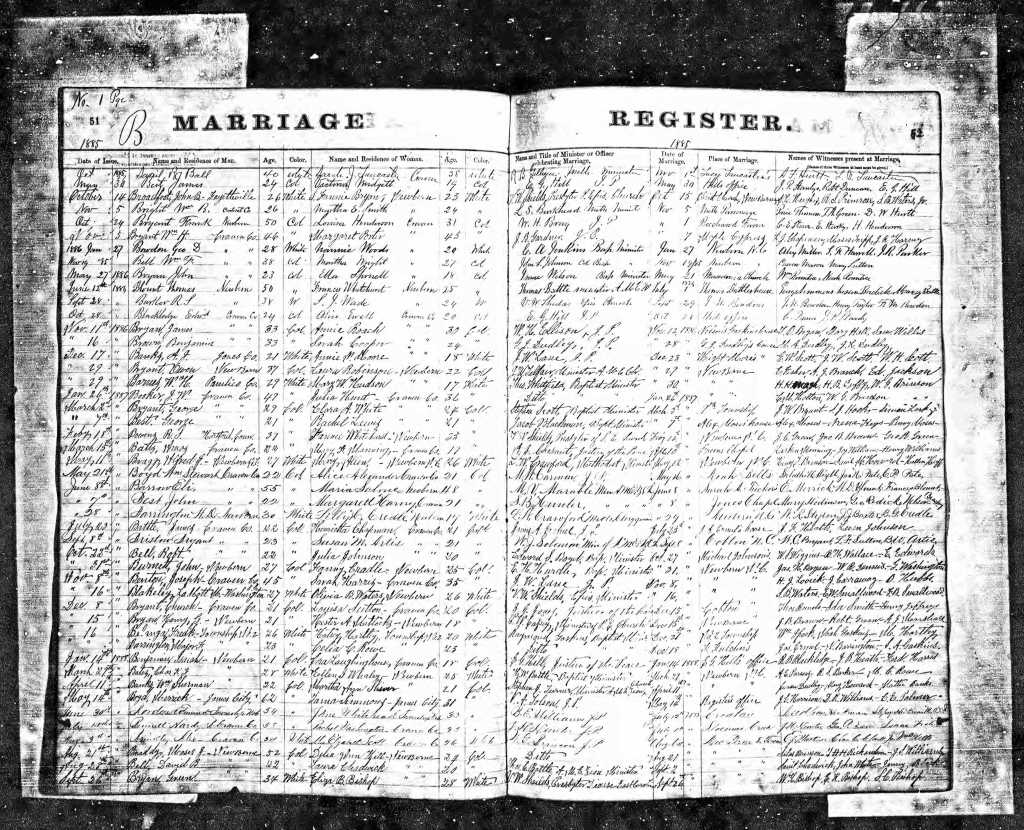 Marriage to Sarah Frances Bryan, left side third row down